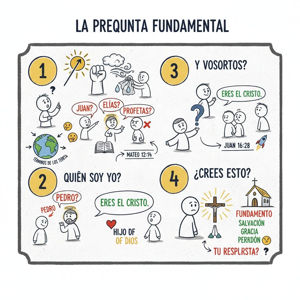 Los discípulos de Jesús lo siguieron y vieron su poder, su corazón lleno de amor, su determinación a seguir su difícil camino a pesar de la oposición de muchos, especialmente de los fariseos, quienes estaban decididos a matarlo (Mateo 12:14). Un día Jesús les preguntó: “¿Quién dicen los hombres que es el Hijo del Hombre?” (Mateo 16:13). Ellos respondieron: “Unos, Juan el Bautista; otros, Elías; y otros, Jeremías, o alguno de los profetas” (v. 14). A pesar de sus enseñanzas y de los milagros que hacía, pocas personas habían comprendido que él era el Mesías, el Hijo de Dios. Entonces Jesús involucró directamente a sus discípulos y les preguntó: “Y vosotros, ¿quién decís que soy yo?” (v. 15).