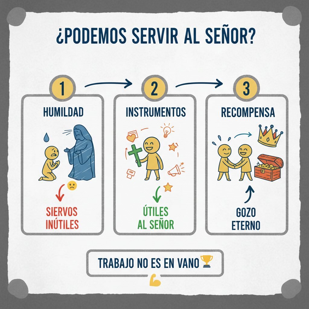 Así también vosotros, cuando hayáis hecho todo lo que os ha sido ordenado, decid: Siervos inútiles somos, pues lo que debíamos hacer, hicimos.