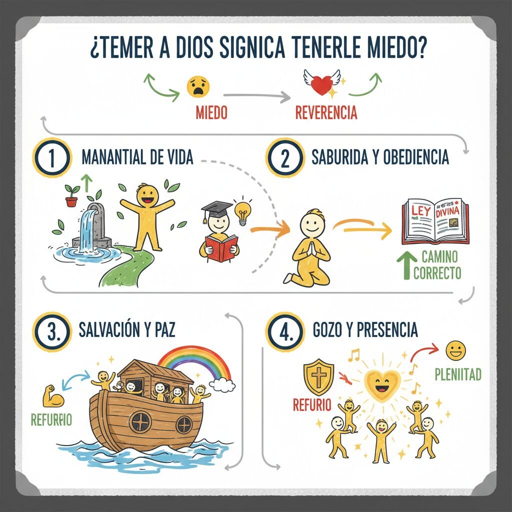 Generalmente “temer” significa «tener miedo». Pero en la biblia, temer a Dios es muy diferente a tener miedo. Es tener conciencia de Su grandeza y santidad divina. Esto nos lleva a estar atentos a lo que pensamos o hacemos ante Aquel que es nuestro Dios. Para el cristiano, el temor reverente a Dios es un concepto esencial de la vida. El deseo de agradarle es el punto de partida, el inicio del camino que lleva a una vida de feliz sumisión a su voluntad, motivada por la fe y el amor a Dios. En el libro de los Proverbios y en los Salmos, el temor del Señor y la sabiduría están unidos: “El temor del Señor es el principio de la sabiduría” (Proverbios 9:10).